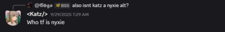 - He got confused with Nyxie by Gbgo as she shared a similar name to Nyxie. He thought that it was a Nyxie alt.
